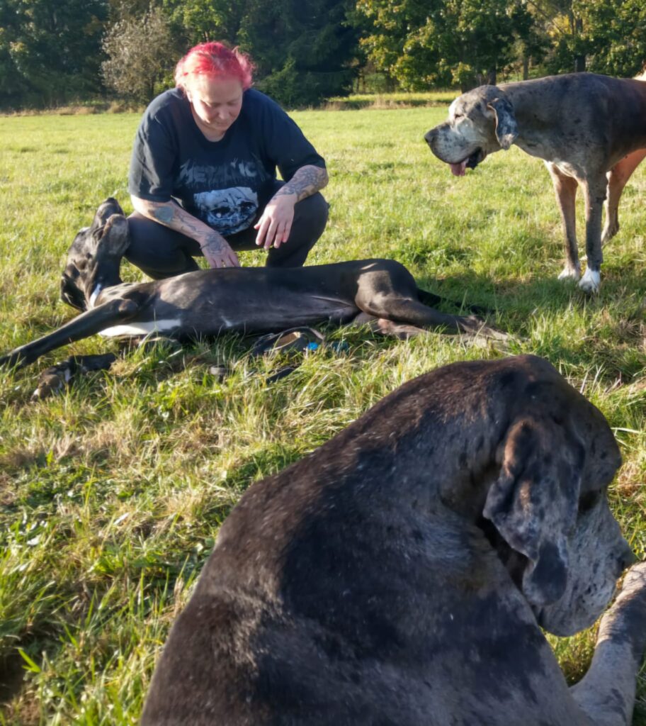 Ihre große Leidenschaft gilt den Doggen, zu denen sie nach Cocker Spaniel und Schäfermix gefunden hat.